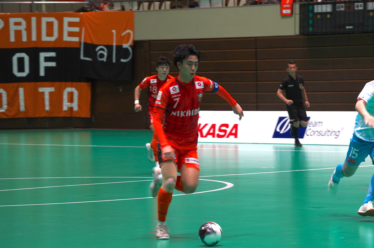 中断明けの初戦は強豪・名古屋。「勝てば流れに乗れる。攻撃的で、見ていて楽しいフットサルをしたい」。その言葉の奥には、勝敗を超えたチームの理想がある。観る人を惹きつけるプレーでバサジィを上昇気流へと導く。若きゲームメイカーは、冷静さの奥に確かな野心を燃やしている。