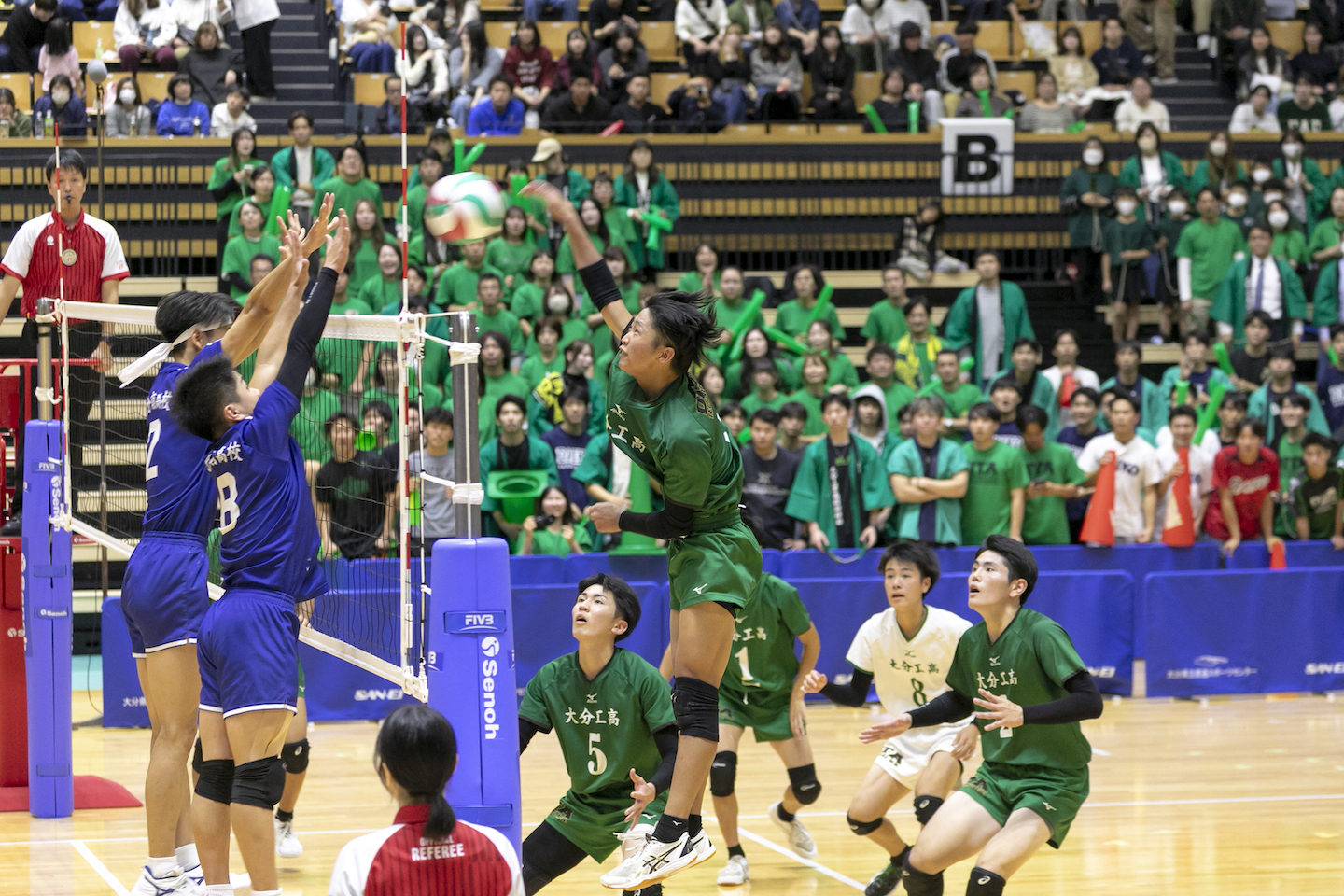 しかし、ふたを開ければ、両者一歩も譲らぬ激闘となった。最初に流れをつかんだのは大分工業。攻撃面では県内屈指の技巧派である和間志苑(3年)や、圧倒的パワーで相手をねじ伏せるエースの今村望夢(2年)が躍動。1年生のポイントゲッター井野本勇斗、行村隆之介ものびのびとプレーし、得点を重ねた。相手のミスに助けられた部分もあったが、サーブレシーブも安定し、持ち味である粘り強さを存分に発揮した申し分のない内容だった。2セットを先取し、全国への切符に王手をかけた。