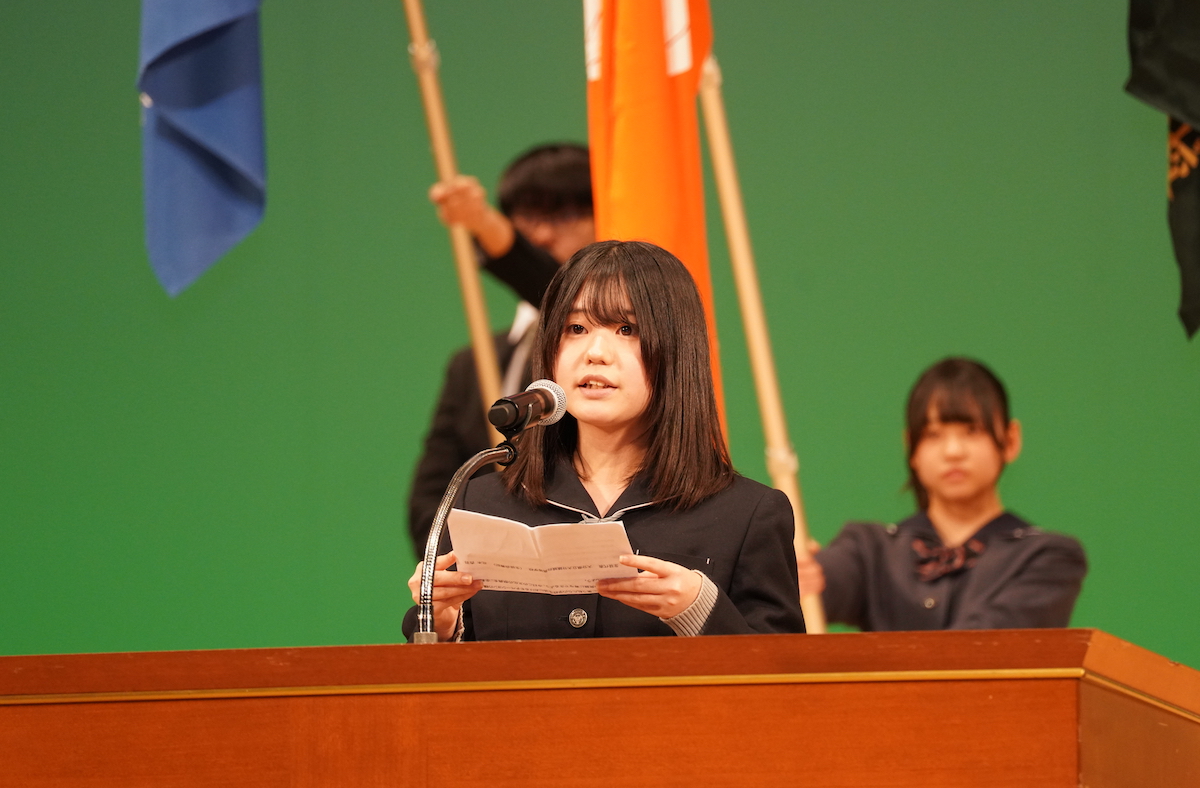 13日のステージ発表は、雄城台高校のファンファーレで華やかに始まった。続く開会行事では、生徒代表の花木杏羽(大分雄城台2年)が登壇し、県総文が地域持ち回りで続いてきた歴史を紹介したうえで、「互いの活動に触れ、新しい刺激を受ける一日にしてほしい」と呼びかけた。多様な専門部が集う県総文の魅力を端的に示す挨拶であり、会場全体を引き締める言葉となった。