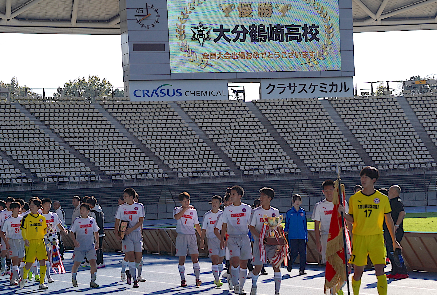 全国高校サッカー選手権県予選決勝は、昨年と同じ顔合わせとなった。大分鶴崎と大分の再戦は、開始早々からスコアが動く。前半5分、大分がいきなり牙をむく。キャプテン岡松愁人(3年)が最終ラインの裏へ抜け出し、冷静に流し込んで先制。2年連続優勝を狙う大分鶴崎は、いきなりビハインドを背負う展開となった。首藤謙二監督は「あれは足を滑らせた事故のような失点だった」と振り返るが、ベンチから見ていたのは、そこで崩れないチームの姿だった。