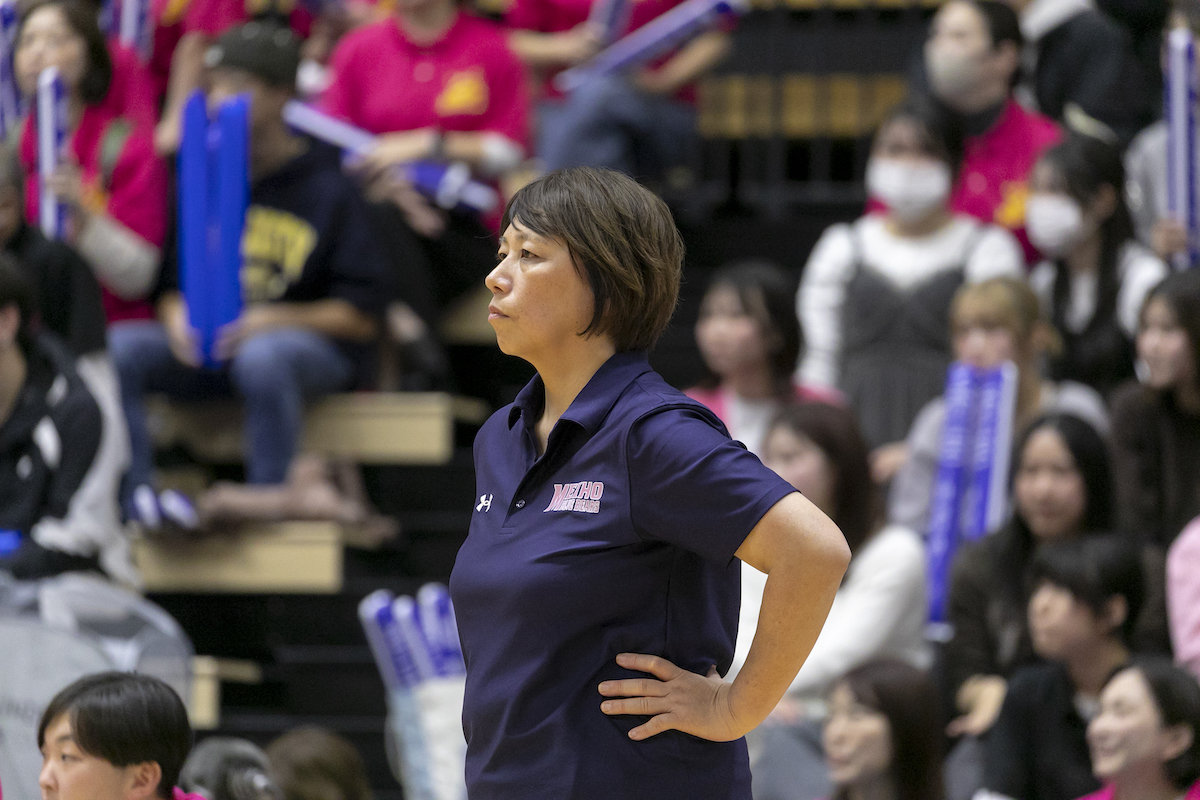 待っていたのは、“パスバスケ”の世界だった。基本的にドリブルは禁止に近く、パスとカッティングで組み立てるスタイル。専門用語も、戦術の約束事も、すべてが初めて触れるものばかりである。家政科での授業では裁縫に苦戦し、コートに出れば頭で理解できない戦術に戸惑う。インカレでは2年時に5位に食い込んだものの、日々の生活は「勉強もバスケも、とにかく辛かった2年間」だった。