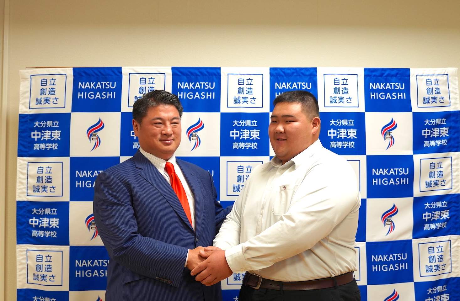 記者会見場に堂々と姿を現したのは、身長174センチ、体重155キロの巨体だ。高校3年間、県内公式戦無敗。1年時には国体(現・国スポ)少年の部で5位タイ。その実績を引っ提げて大相撲の世界に飛び込むのが中津東の田中翔盛(3年)だ。来年初場所前の新弟子検査を受け、順調にいけば前相撲で初土俵を踏む予定だ。