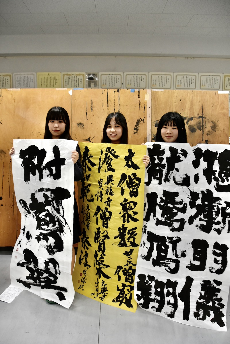新部長となる 大久保杏優(あゆ、2年)は、「来年に向けてプレッシャーはあるが、1ミリも手を抜かず全力で連覇に挑みたい」と意気込む。この部の強さのひけつは「素直さと継続」。素直な心で努力を積み重ねれば、自然と結果はついてくる。そう語る鹿苑講師のもと、大分南高校書道部はこれからも自分たちの書と真摯に向き合う。