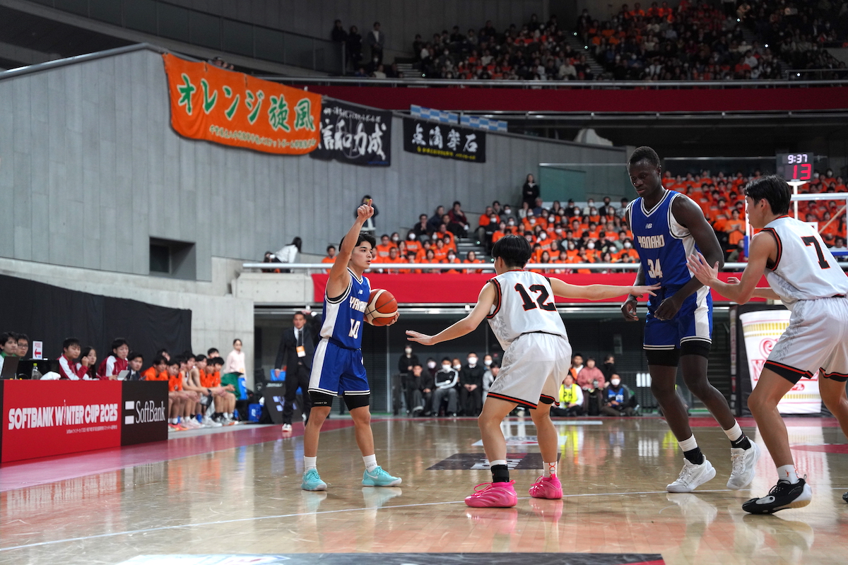 試合の入りは理想的だった。序盤からエースのファデラ・ママドゥ(2年)がゴール下を支配する。207センチの長身を生かし、力強いドライブと豪快なダンクで会場を沸かせた。第2クオーター(Q)に入っても主導権は渡さない。第2の得点源、儀間クリスチャン(3年)が着実に加点し、前半を46―32で折り返した。