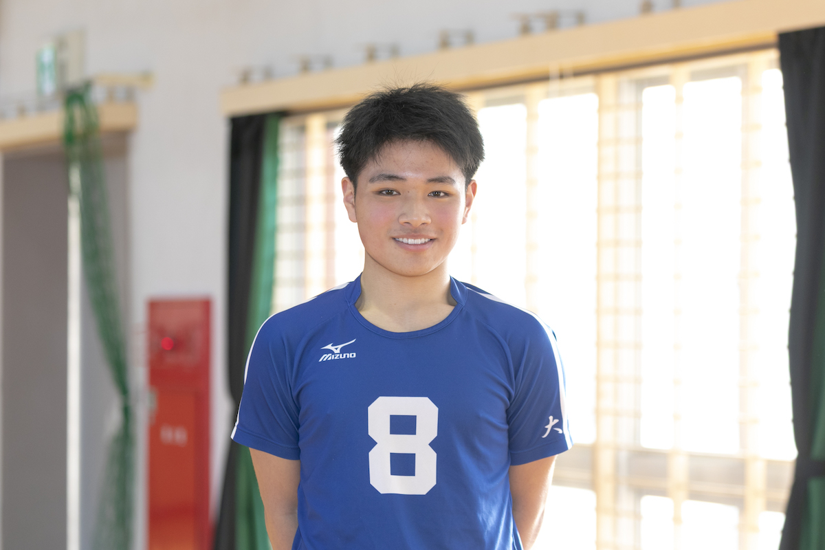 県内高校男子バレーボール界で、近年安定して頂点争いを演じている大分南。その中枢を担う存在が、セッターの仲本路惟(なかもと・ろい、2年)だ。1年時から司令塔としてコートに立ち、攻撃のリズムをつくり続けてきた。計算された配球と安定したトスワークに加え、ハンドボールで40メートルのロングスローを投げ切る強肩も大きな武器だ。ネットから離れた位置でも一気に展開を変え、相手守備の準備が整う前に勝負を仕掛ける。その判断と実行力が、大分南の攻撃を支えている。