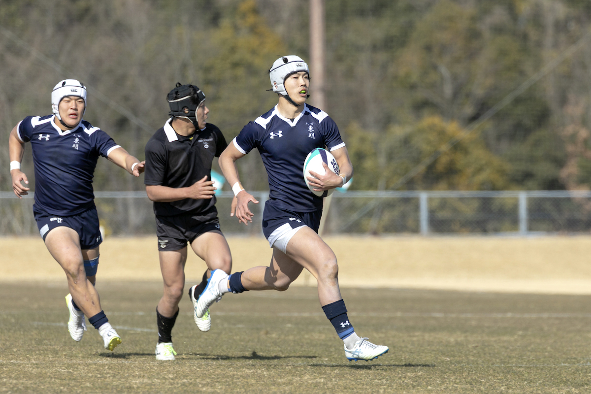 日本一を掲げて始動した大分東明。その新チームの中心にいるのがスタンドオフでキャプテンの吉田夏樹(2年)だ。花園8強入りを果たした2つ上の兄・幹太(現・近畿大)の背中を追い、大分東明に入学した。昨夏にはU―17日本代表として国際舞台も経験。左足から繰り出すキック、緩急を操るパス、そして一瞬のギャップを射抜くラン。判断の速さと大胆さを併せ持つ司令塔だ。