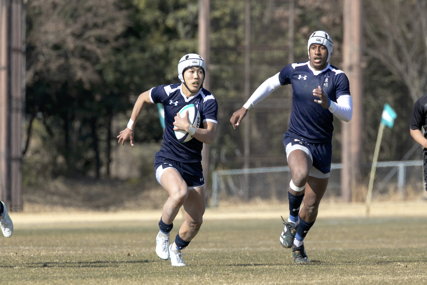 日本一を掲げて始動した大分東明。その新チームの中心にいるのがスタンドオフでキャプテンの吉田夏樹(2年)だ。花園8強入りを果たした2つ上の兄・幹太(現・近畿大)の背中を追い、大分東明に入学した。昨夏にはU―17日本代表として国際舞台も経験。左足から繰り出すキック、緩急を操るパス、そして一瞬のギャップを射抜くラン。判断の速さと大胆さを併せ持つ司令塔だ。