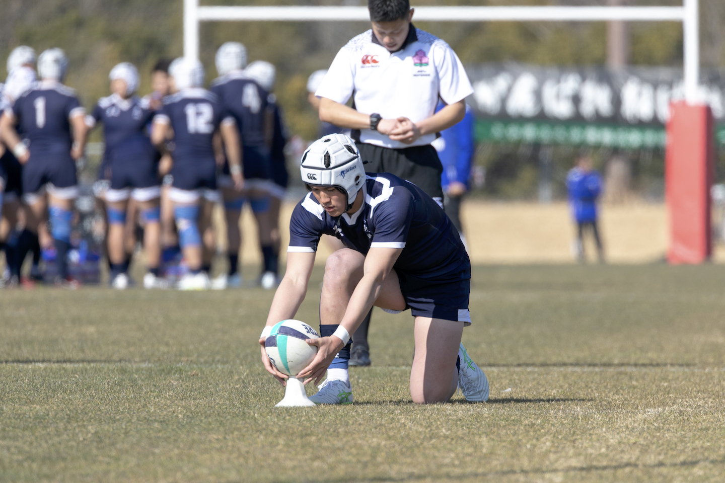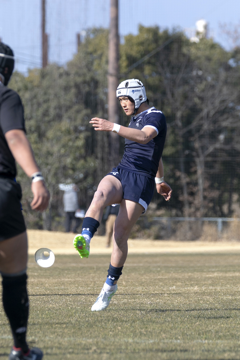 今季、新たに任されたのがキッカーという役割である。県高校新人大会決勝では5本のコンバージョンゴールを成功させた。歓声がやみ、静寂が支配する数秒間。ティーにボールを置き、深く息を吸い込む。右足を振り抜いた瞬間、白い楕円球はゴール中央を射抜く。「最初は緊張して難しかった。でも、毎日コツコツ蹴り続けるうちに上達したと思う」。高い身体能力を発揮し、得点源としての役割を果たす。