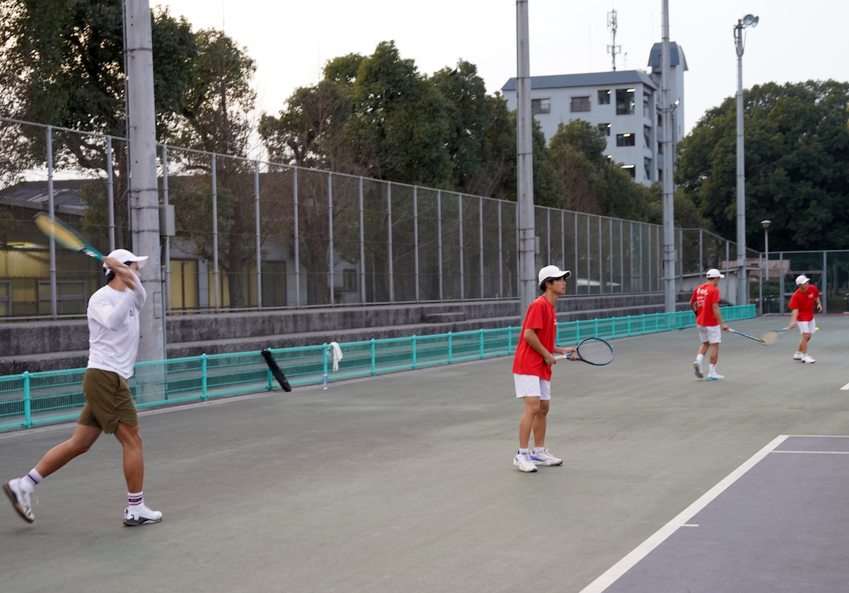 チームを支えるもう一人が高橋央太郎(2年)である。安定感あるストロークで試合を組み立て、声で仲間を鼓舞する存在だ。九州地区大会では出場したシングルスで全勝。それでも「団結力が足りなかった」と自らを振り返った。全国選抜ではシングルス、あるいはダブルスでの起用も想定されるが、「どの立場でも全力を尽くすだけ。ポイントはダブルス」と言い切る。誰と組んでも合わせられる柔軟性が武器である。