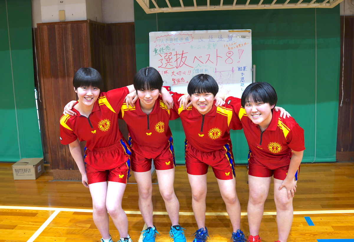 戦力面でも個性は際立つ。1年生の荒木くららは、相手の嫌がる配球と用具の特性を生かし、じわじわと崩す職人型。派手さはないが、確実に流れを引き寄せる。一方、エース候補の椎原黎はボールの回転や試合展開への対応力が光る。懸念材料である決定力を研ぎ澄まされれば、全国でも通用する柱となる。ダブルスは安部七葉(2年)を軸に荒木、椎原を組み合わせ、相手によって最適解を探る。団体戦の妙味を熟知した布陣である。