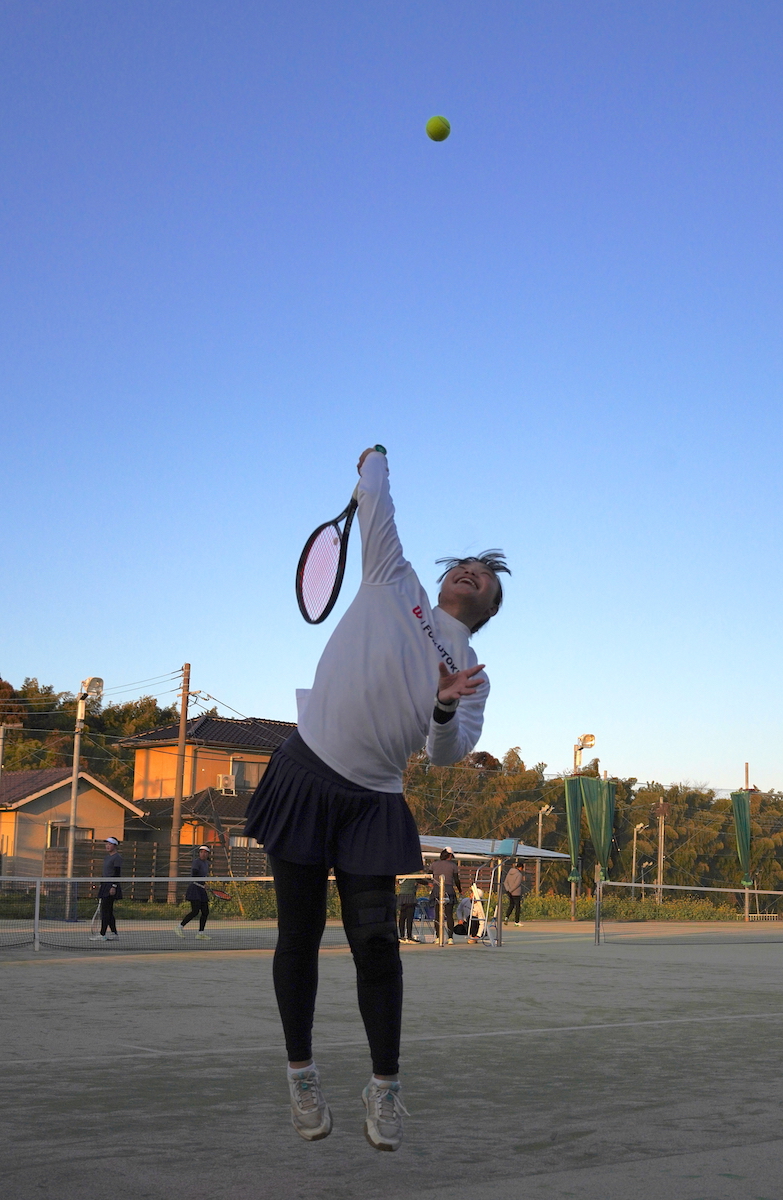 ペアが2年生から1年生に変わりました。以前は攻撃的なテニスが軸でしたが、今はラリーでしっかりボールを回すことを意識しています。そうすることで、前衛の1年生も動きやすくなっていると思います。体力が特別あるわけではないので、ストロークで相手を崩すことを意識しています。力強いストロークが自分の武器だと思っています。自分は攻めるテニスが好きなので、そのスタイルは変えずに続けています。