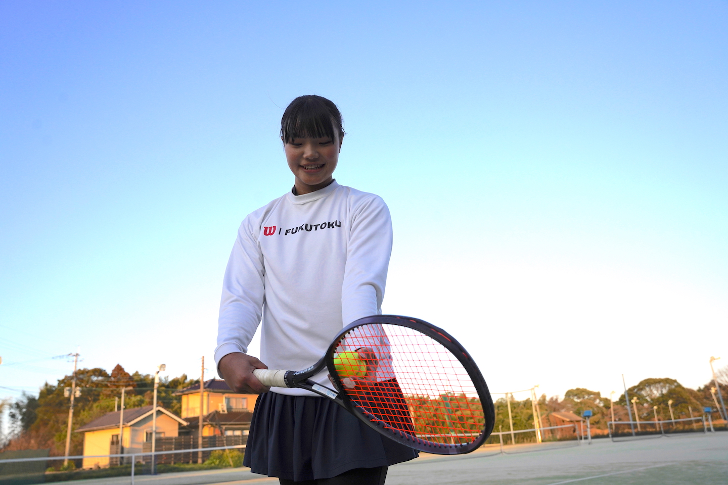九州地区予選で準優勝し、全国高校選抜テニス大会への出場を決めた福徳学院女子テニス部。そのチームを束ねるのがキャプテンの田中聖香(2年)だ。団体戦ではダブルス1を任される軸でありながら、人前に立つことは決して得意ではないという。それでも自ら立候補して主将となり、個性豊かな仲間たちをまとめながらチームを前へ導く。攻撃的なストロークを武器にコートで戦い、主将としては周囲を見渡す力を磨く。悔しさの残る九州準優勝を糧に、全国の舞台へ挑む。
