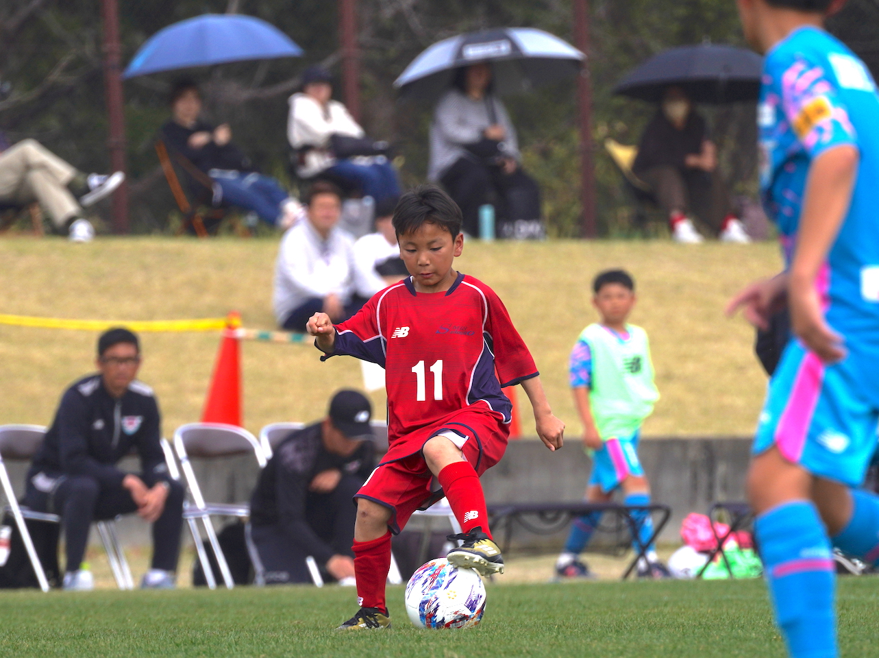 前半4分、自陣でのミスから先制を許す。それでも下を向かない。同11分、相手のミスを誘い、諸冨巧真(新5年)が力強いミドルシュートを突き刺し同点。しかし、その直後に再び失点。さらに相手エースの個の力に押し切られ、前半は1―5で折り返した。