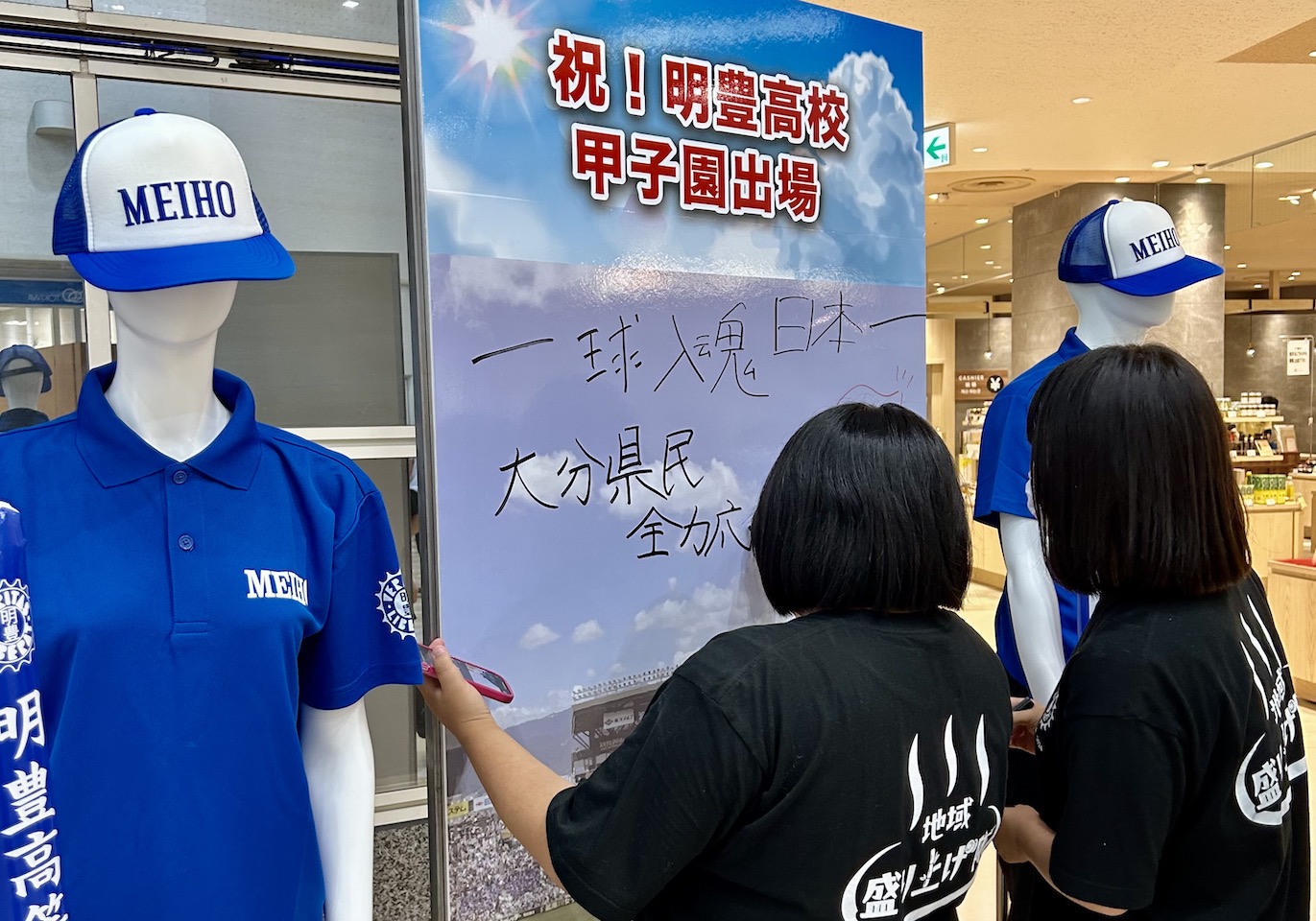 また、同校野球部の夏の甲子園出場を後押しする応援企画にも参加。別府市役所や商業施設にメッセージボードを設置し、地域全体でチームを応援する機運を高めた。競技だけでなく、こうした活動を通じて学校の存在価値を地域に発信することも、この部の重要な役割である。