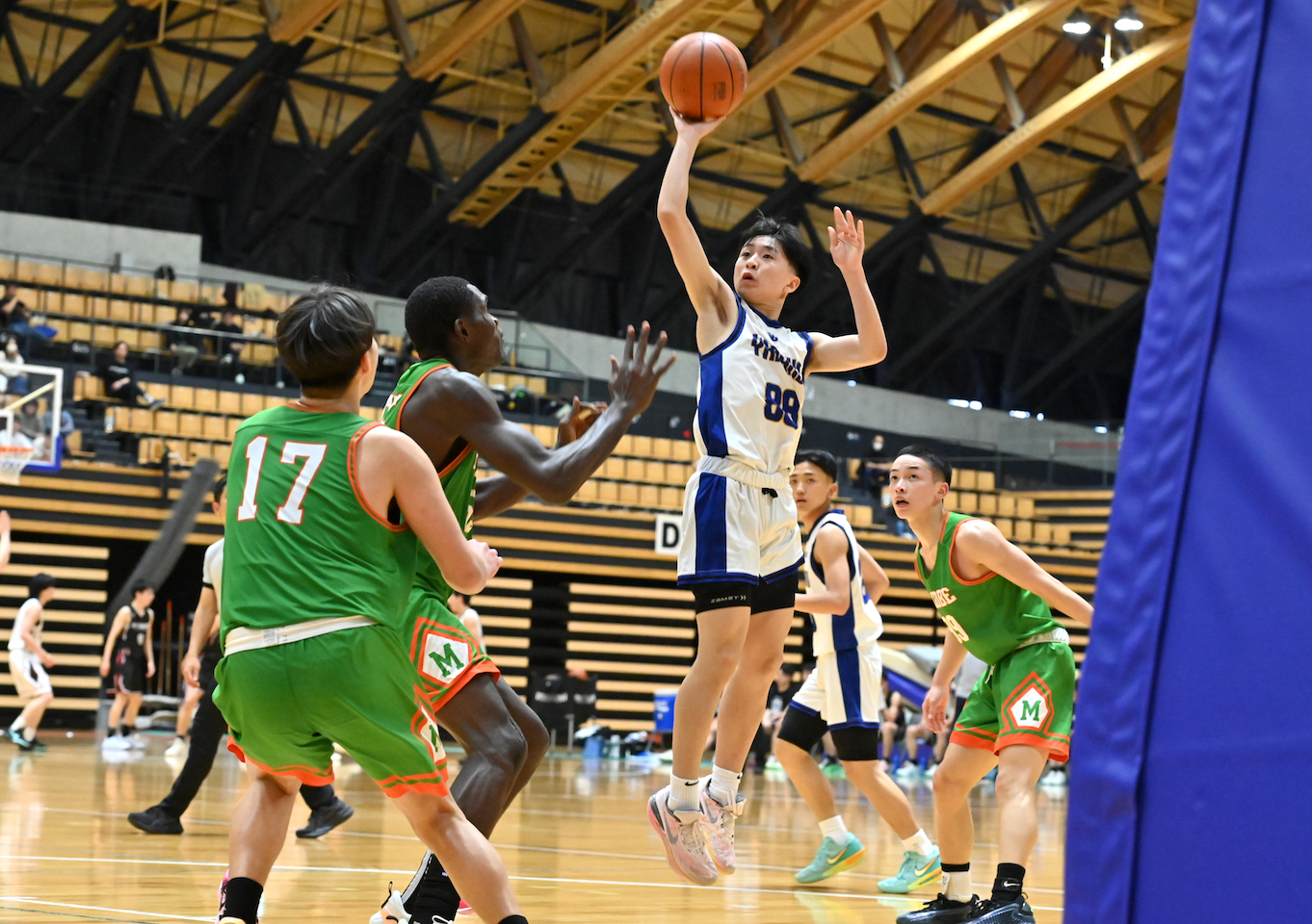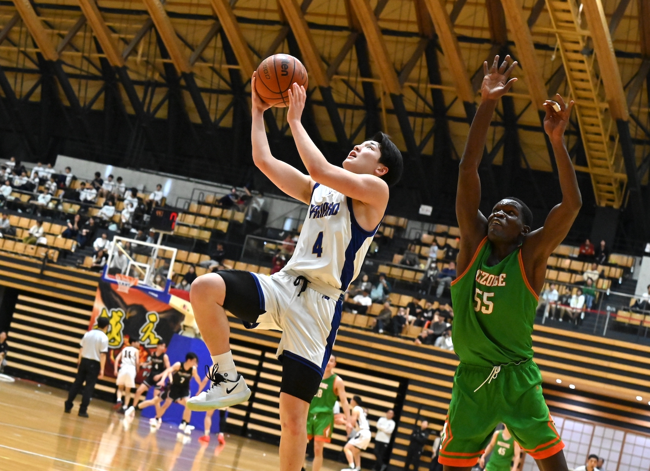 それでも第2Qは、試合の流れを引き寄せたのは代役ではなく、新たな軸としての自覚だった。207センチの留学生ファデラ・ママドゥ(3年)を中心にインサイドで起点をつくり、天野大空郎(同)がジャンプシュートやドライブで得点を重ねる。さらに守備の要である川崎斗夢(同)がこの日は攻撃でも存在感を示し、2桁得点をマーク。攻撃の構成が徐々に形を成していく。
